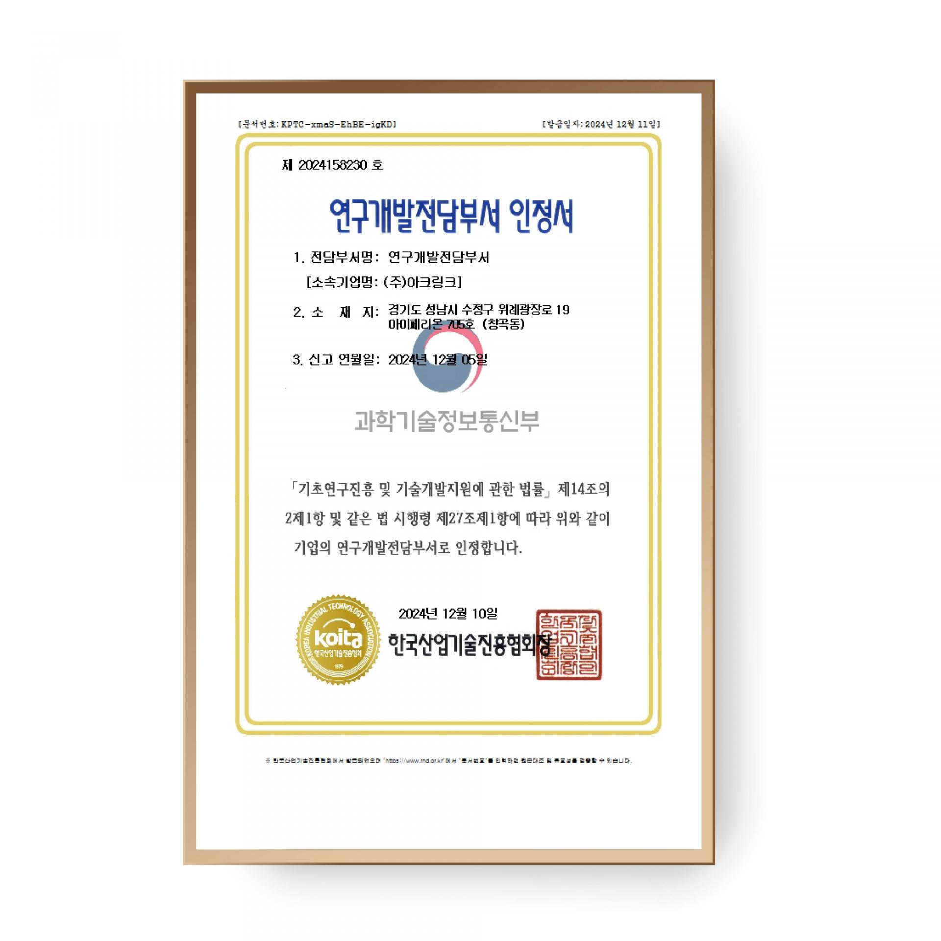 [소식] 아크링크, 연구개발전담부서 인증 획득… 몸캠피싱 피해 구제 기술 선도